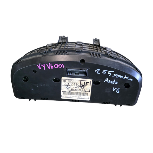 Genuine salvaged instrument cluster for VY Holden Calais and Berlina sedans with V6 automatic transmission. Part number 92160980 JF. This Level 2 s...